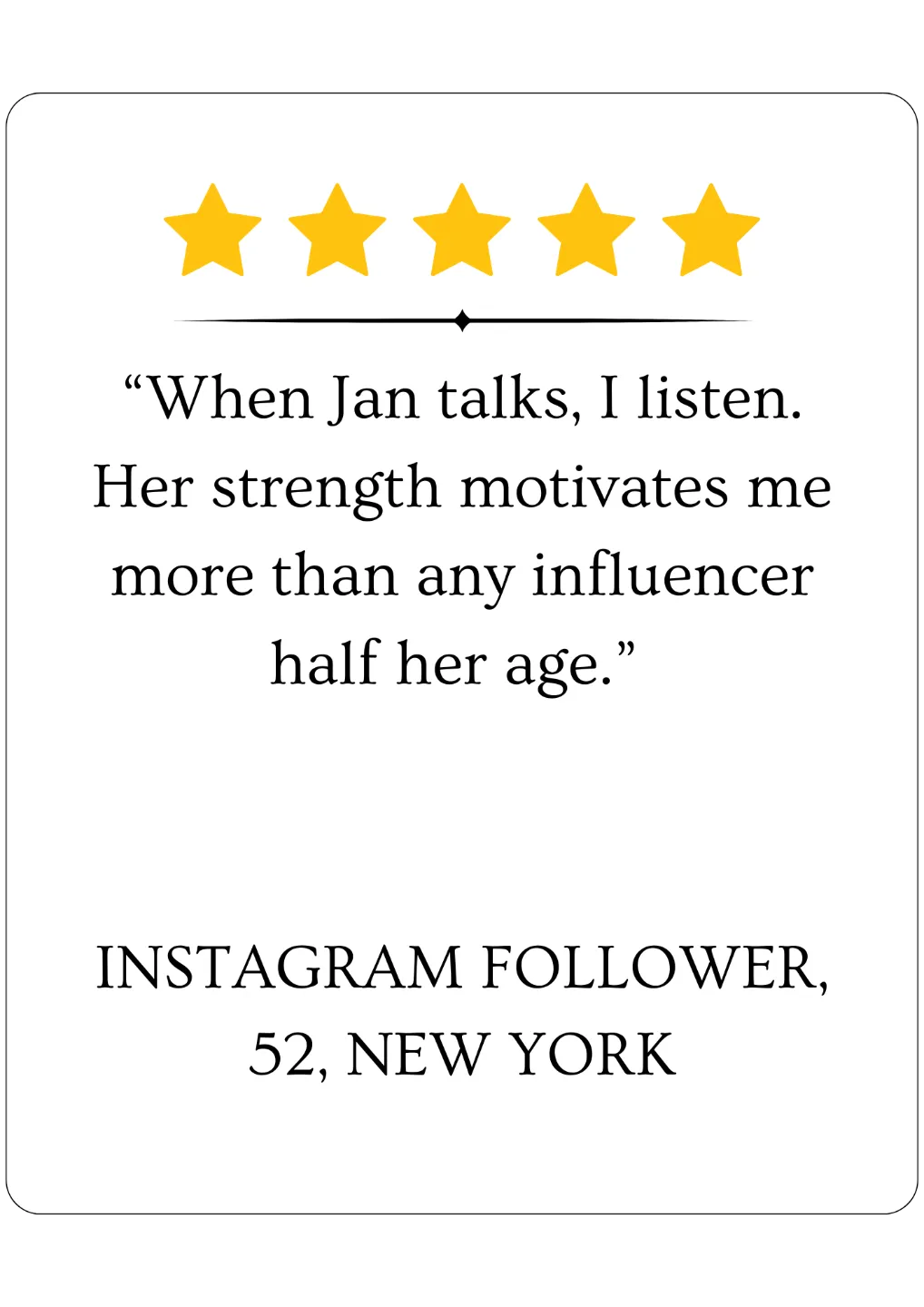 With over 93K+ engaged followers growing and a powerful voice that women (and men) trust, Jan is the fresh, age-defying face of health, fashion, beauty, wellness, and travel brands.